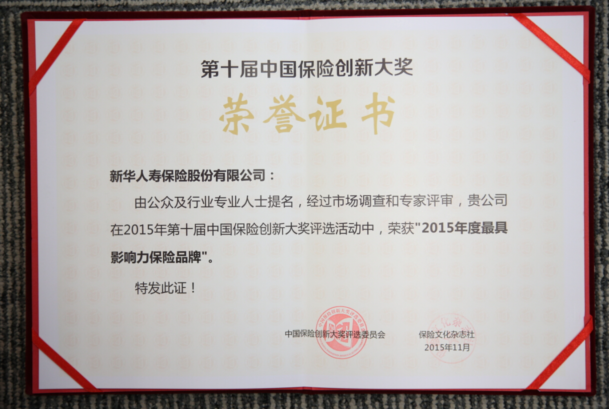 2015年最佳健康保險(xiǎn)產(chǎn)品獎(jiǎng)