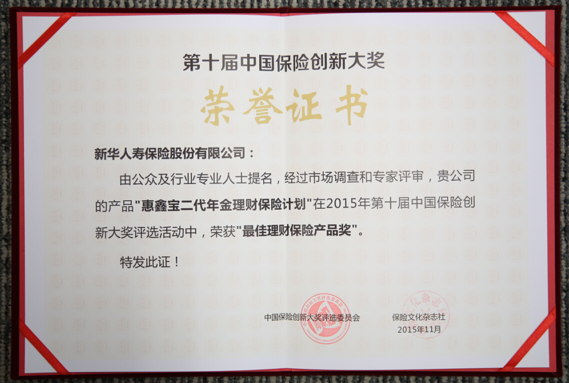 2015最佳理財(cái)保險(xiǎn)產(chǎn)品獎(jiǎng)