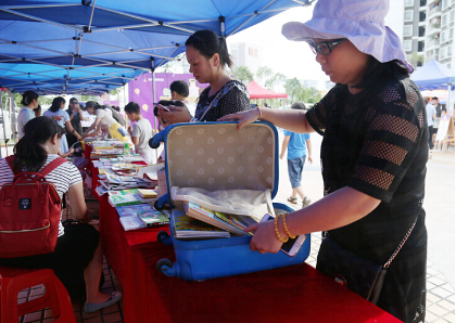 6月18日,深圳新聞網(wǎng)攜手中國(guó)光大銀行深圳分行,聯(lián)合舉辦了一場(chǎng)“行李箱捐換書籍”公益活動(dòng),數(shù)百名小朋友及家長(zhǎng)拖著大小不一的行李箱來(lái)到現(xiàn)場(chǎng),不僅換到了喜歡的讀物,還捐出自己的藏書,在分享讀書之樂的同時(shí),將愛心傳遞下去。