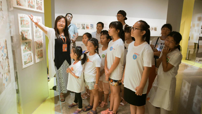 開(kāi)營(yíng)當(dāng)天,孩子們還參觀了中國(guó)美術(shù)館《故事繪》連環(huán)畫展,中國(guó)美術(shù)館志愿者教員為環(huán)衛(wèi)子女介紹了中國(guó)美術(shù)館的歷史以及文明觀展禮儀。