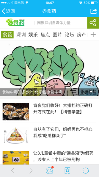 食藥深圳是深圳市食品藥品監(jiān)督管理局唯一官方微信,每日發(fā)布最權(quán)威的深圳食品藥品相關(guān)資訊,聚焦市民最關(guān)心的“舌尖上的安全”。在“食藥深圳”可以看到深圳餐飲、農(nóng)產(chǎn)品、藥品等食品安全的信息公布、市食藥局定期發(fā)布的食品抽檢結(jié)果、權(quán)威的食品安全科普知識,還可以在線辦理食品藥品業(yè)務(wù)、向市食藥局投訴建議。