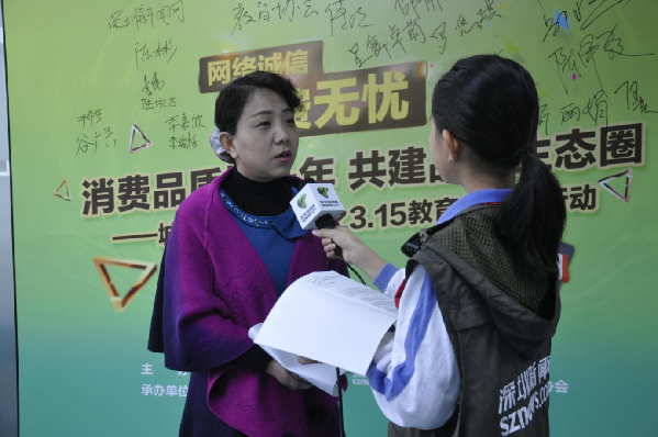 深網小記者現(xiàn)場采訪深圳市消費者委員會投訴部部長靳麗娟