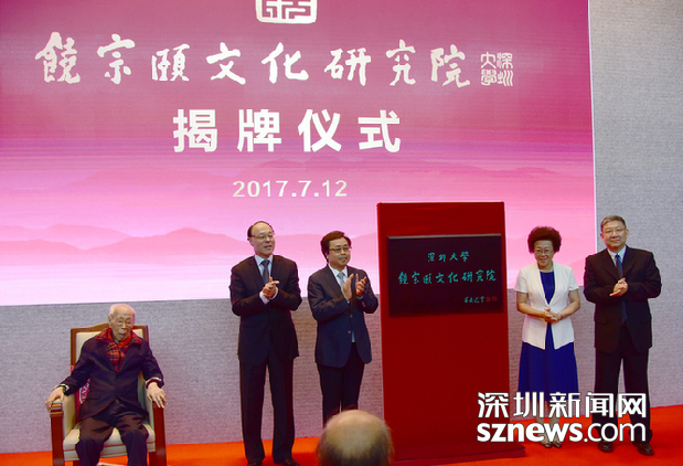 在饒宗頤教授的見(jiàn)證下,李小甘、吳以環(huán)、劉洪一、李清泉共同為深圳大學(xué)饒宗頤文化研究院揭牌。
