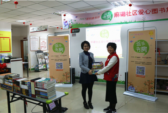 據(jù)介紹,為建設(shè)“學(xué)習(xí)型社區(qū)”,麻磡社區(qū)已經(jīng)建立了“四點(diǎn)半學(xué)校閱讀區(qū)”閱讀室,但由于社區(qū)原有圖書陳舊,急需一批新書豐富圖書資源來滿足社區(qū)孩子們的閱讀需求。了解到這一信息后,“爸爸書房”聯(lián)合中國工商銀行深圳分行、深圳市閱讀聯(lián)合會(huì)采購了一批全新的兒童讀物送到麻磡社區(qū),建立“爸爸書房愛心圖書角”,助力社區(qū)圖書室建設(shè)。