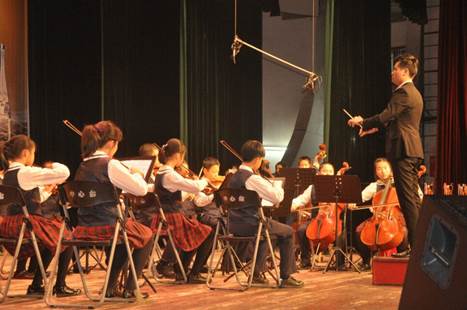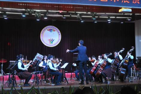 王翔云老師在龍華區(qū)學校藝術展演中指揮弦樂團