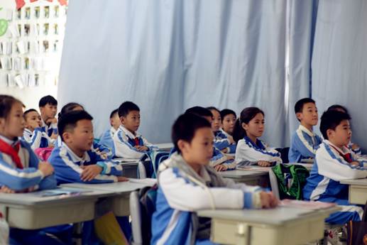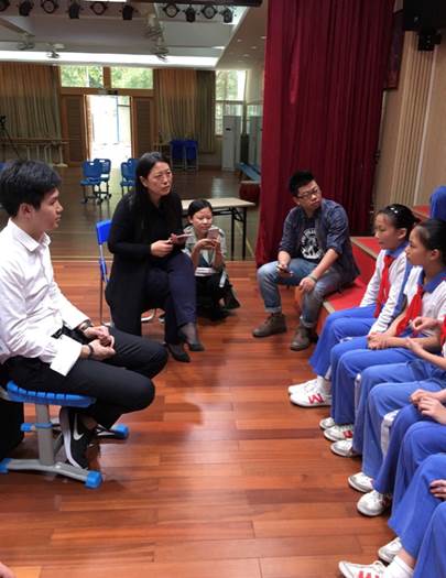 學生認真地跟著王翔云老師拍打節(jié)奏唱歌