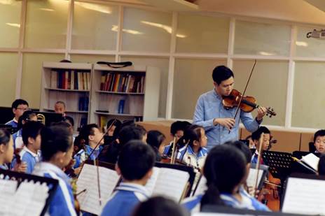 在王翔云成為丹堤實驗學校的一員之后,就將自己投入到了弦樂團的學生訓練中,每天起早貪黑地和孩子們一起訓練,甚至利用周末時間和孩子們待在一起練習。在和孩子共同努力下,丹堤實驗學校的弦樂團在2016年龍華新區(qū)學校藝術展演榮獲一等獎,在2016年廣東提琴文化藝術節(jié)青少年弦樂邀請賽中獲得銀獎?!爱斎唬@些成績的獲得也離不開學校的大力支持,離不開張國明教授等高人的指點。我認為小學階段是人一生中形成德育和美育的重要時期。我們總會要求孩子們要形成良好的生活習慣,我認為倒不如讓他們覺得我們現(xiàn)在做的每一件事都是正確的,有意義的,比如在我們的課堂和訓練中,我就會要求他們將譜臺、椅子、琴盒、琴袋等擺放整齊,現(xiàn)在他們都可以自覺地完成?!?/p>