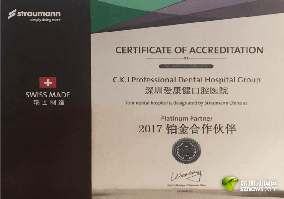 愛(ài)康健先后獲得“廣東省著名商標(biāo)”、“深圳老字號(hào)”等榮譽(yù)。公司業(yè)務(wù)涵蓋牙齒種植、口腔正畸、牙周治療、口腔修復(fù)、美容修復(fù)及牙齒美白、兒童齒科等領(lǐng)域。公司由數(shù)百名畢業(yè)于北京大學(xué)、香港大學(xué)、華西大學(xué)、武漢大學(xué)及中山大學(xué)等著名口腔院校專(zhuān)業(yè)人員組成的醫(yī)護(hù)團(tuán)隊(duì)為客戶提供個(gè)性化、全方位的口腔健康管理服務(wù)。