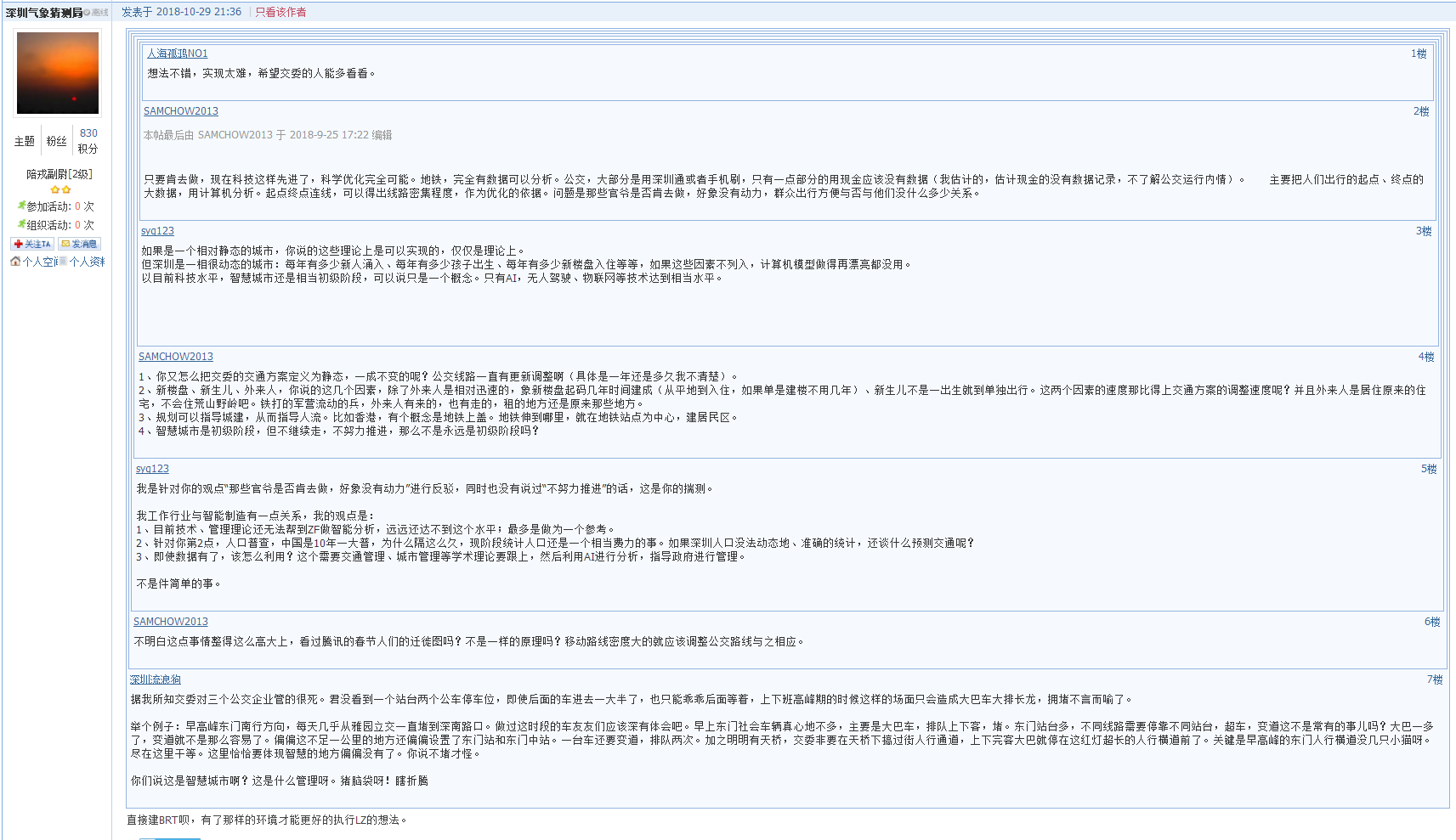 9月25日有市民在深圳論壇以《關(guān)于公交線路規(guī)劃和站臺設(shè)置的一點(diǎn)建議》為題發(fā)帖,自稱是曾經(jīng)的公交人和現(xiàn)在的私家車駕駛員,對深圳的公交出行一口氣提出3個(gè)意見。帖文中最為吸引人眼球的觀點(diǎn)就是“將全市各站點(diǎn)進(jìn)行編號,采用計(jì)算機(jī)技術(shù),對編號站點(diǎn)進(jìn)行排列組合,每個(gè)方向連續(xù)的10個(gè)站點(diǎn)有三條線路覆蓋,超出三條屬于線路密度高或規(guī)劃不合理?!眴芜@一句話就在跟帖中引發(fā)了針鋒相對的辯論,有支持的市民認(rèn)為:主意不錯(cuò),實(shí)現(xiàn)起來應(yīng)該也難度不大?,F(xiàn)在不是整天提什么物聯(lián)網(wǎng)、大數(shù)據(jù)、智慧城市么,這個(gè)不就是這些高新技術(shù)在公交出行方面的應(yīng)用。不看好的市民則認(rèn)為:目前技術(shù)、管理理論還無法做智能分析,遠(yuǎn)遠(yuǎn)還達(dá)不到這個(gè)水平,“最多是做為一個(gè)參考”。