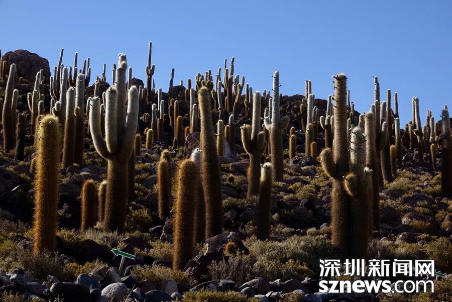 深圳新聞網(wǎng)訊   烏尤尼鹽沼中,有一個(gè)孤立的小山頭,猶如瀚海中的小島。島上長滿巨大的仙人柱,據(jù)說有的已經(jīng)生長了上千年。這種形狀各異、耐鹽堿、耐干旱的熱帶植物豐富了鹽沼的風(fēng)光,構(gòu)成絕無僅有的世界奇觀。 李仁奇 攝