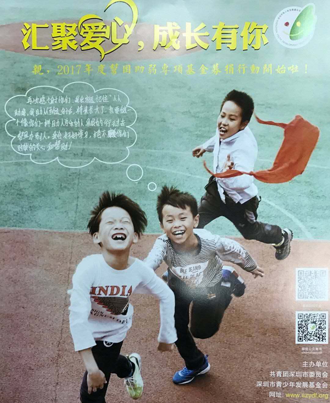 為關(guān)心關(guān)愛青少年健康成長,營造樂觀、積極向上的社會(huì)氛圍,深圳農(nóng)商行發(fā)起了“匯聚愛心成長有你”的公益愛心活動(dòng),號(hào)召全行向2017年度深圳市青少年幫困助弱專項(xiàng)基金進(jìn)行愛心捐助?;顒?dòng)得到了全行上下的大力支持,全行共募集善款人民幣221156.66元。青基會(huì)對深圳農(nóng)商行員工的善舉表示了深深的謝意,并期待與深圳農(nóng)商行開展更廣泛、更深入的公益活動(dòng)合作。