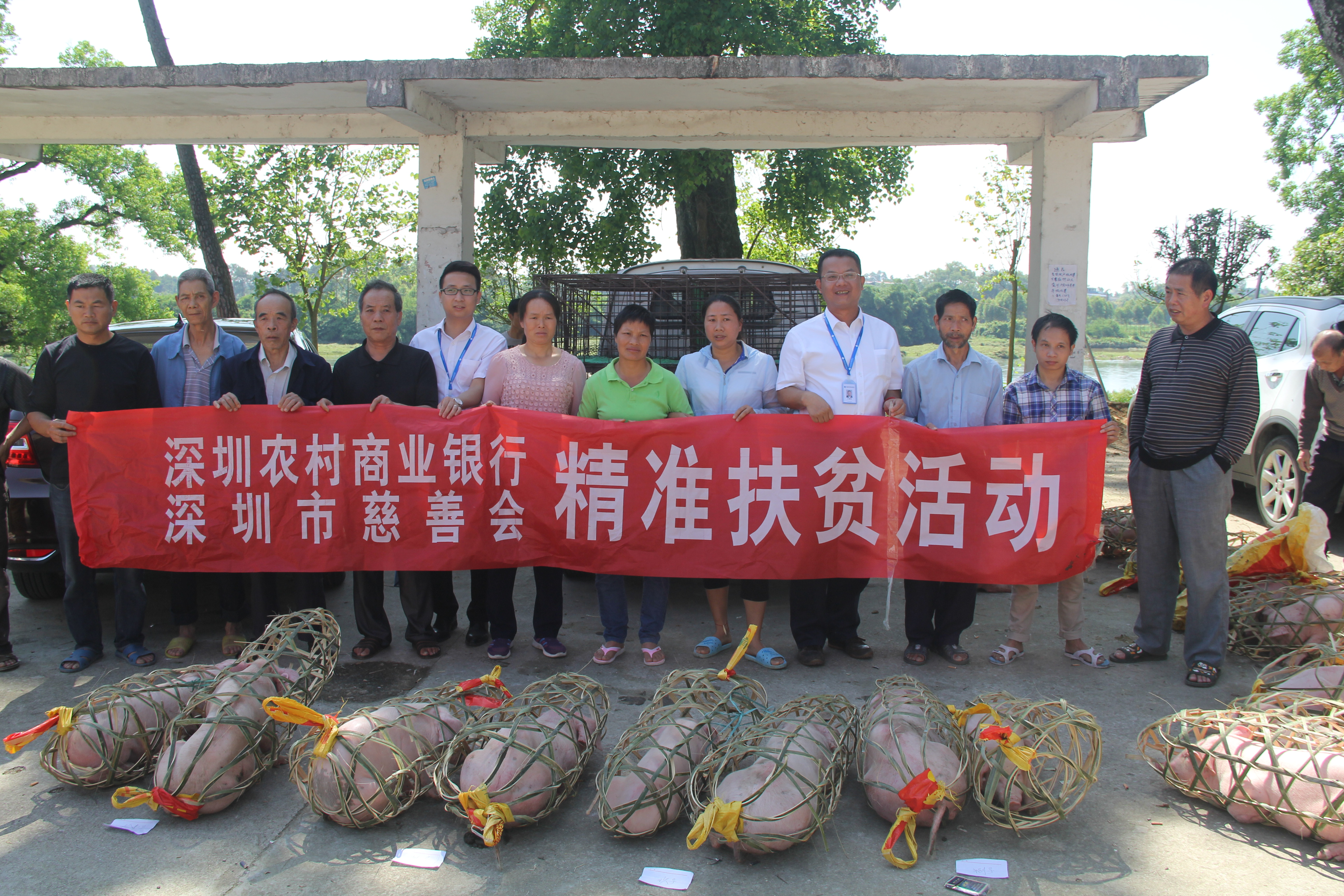 2017年,深圳農(nóng)商行的廣西6家機(jī)構(gòu)開展了“深桂心連心”精準(zhǔn)扶貧活動(dòng),向所在地貧困戶免費(fèi)發(fā)放農(nóng)業(yè)生產(chǎn)資料,通過采購等值的農(nóng)資(如雞、鴨、豬崽、農(nóng)作物種子與樹苗等)按戶發(fā)放給扶貧對象,待雞、鴨、豬崽和農(nóng)作物可出售時(shí)由廣西各機(jī)構(gòu)介紹銷售或負(fù)責(zé)回購,確保扶貧對象既能脫貧,又能提高致富能力。深桂心連心精準(zhǔn)扶貧活動(dòng),共資助了299戶貧困戶,扶貧總投入為292879元。通過扶貧活動(dòng),帶動(dòng)更多的貧困戶依靠辛勤勞動(dòng),脫貧致富。