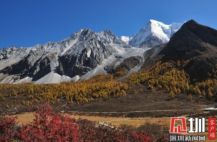 深秋時節(jié),天高云淡,四川西南部稻城亞丁景區(qū)滿山的落葉松在陽光映襯下呈現(xiàn)出金黃的色彩,加之深紅色灌木的點綴,又得用那句“上帝的調(diào)色板”來比喻了。李仁奇攝