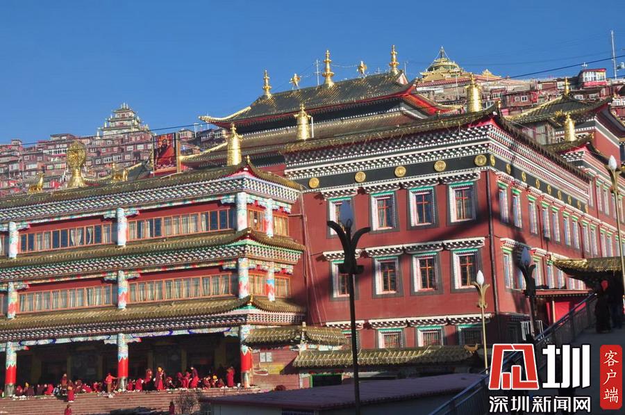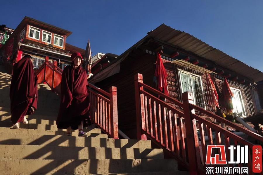 谷底和山梁上分布著幾座寺廟和佛堂,裝飾考究,金碧輝煌。李仁奇攝