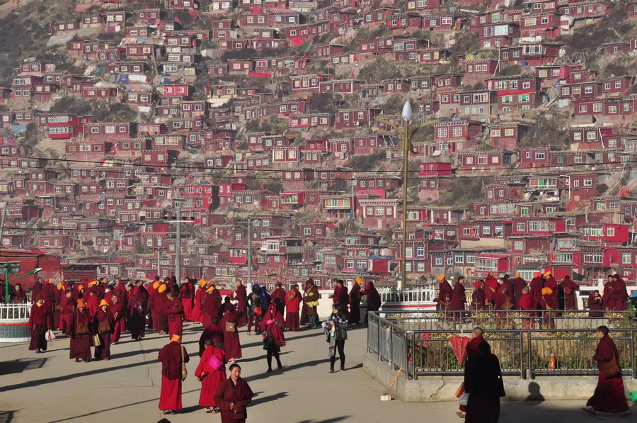 色達(dá)佛學(xué)院的僧舍令人嘆為觀止,連綿數(shù)公里的山谷布滿了密密麻麻的小木棚屋。李仁奇攝