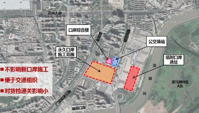 皇崗口岸重建是深圳落實“雙區(qū)驅(qū)動”戰(zhàn)略和推動深港科技創(chuàng)新合作區(qū)建設(shè)的重大工程項目,受到中央和省、市的高度重視,按照規(guī)劃方案重建分三步實施,首先,在貨檢區(qū)建設(shè)臨時旅檢場地,其次,拆除皇崗口岸旅檢片區(qū)老舊建筑,最后,建設(shè)新口岸。