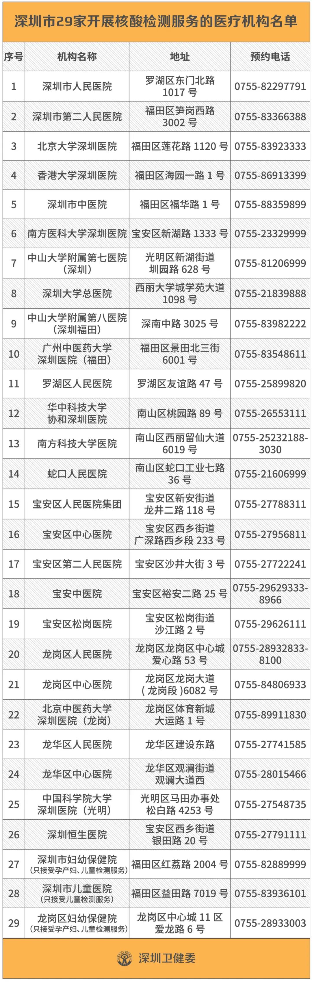 跨境學(xué)生可聯(lián)系全市提供核酸檢測(cè)的29家醫(yī)療機(jī)構(gòu)(詳見(jiàn)附件,含醫(yī)院名稱(chēng)、地址和聯(lián)系電話(huà))中的任意一家進(jìn)行檢測(cè),部分醫(yī)院有預(yù)約要求,部分醫(yī)院對(duì)檢測(cè)服務(wù)時(shí)間有限定,因此首次前往檢測(cè)前,請(qǐng)先拔打聯(lián)系電話(huà)了解醫(yī)院是否需要預(yù)約和服務(wù)時(shí)間安排。