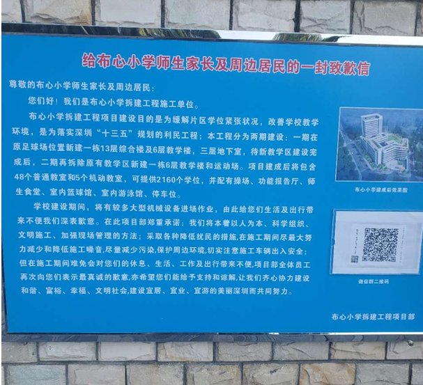 對于家長最關(guān)心的學(xué)生安全問題,羅湖區(qū)教育局回應(yīng)道:“建設(shè)方案經(jīng)過專家論證評審,對原有教學(xué)樓無安全影響。實(shí)施過程邀請第三方安全監(jiān)測單位對教學(xué)樓進(jìn)行監(jiān)測,頻率每天一次,確保安全。施工過程還將采取一系列安全文明施工措施:一是易起塵作業(yè)面100%濕法施工;二是裸露土及易起塵物料1做到00%覆蓋;三是每個出入口100%安裝沖洗設(shè)施;四是安裝隔音圍擋;五是錯開教學(xué)時間施工等。把影響學(xué)校的安全及教學(xué)環(huán)境降到最低。”除此以外,布心小學(xué)已成立建設(shè)安全領(lǐng)導(dǎo)小組,不定期召開家委會通報(bào)建設(shè)情況。羅湖區(qū)教育局相關(guān)安全辦和基建科室,也實(shí)時掌握和管理項(xiàng)目建設(shè)安全情況。