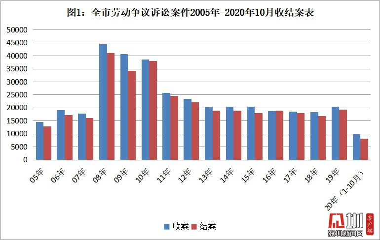 深圳市中級人民法院勞動爭議審判庭(以下稱深圳中院勞動庭)于2005年4月成立,是全國法院系統(tǒng)第一家專業(yè)審判庭。深圳部分基層法院也相繼成立專業(yè)審判庭或指定某一派出法庭集中審理勞動爭議案件。勞動爭議糾紛受經(jīng)濟(jì)發(fā)展水平、國家政策、就業(yè)環(huán)境等影響較大,一定程度上是經(jīng)濟(jì)發(fā)展和社會和諧度的晴雨表。深圳企業(yè)林立,被喻為“世界工廠”,大量的外來務(wù)工人員在本市就業(yè),深圳法院勞動爭議十五年來的審理情況反映著我國經(jīng)濟(jì)最活躍地區(qū)不斷變化的勞資關(guān)系狀況。