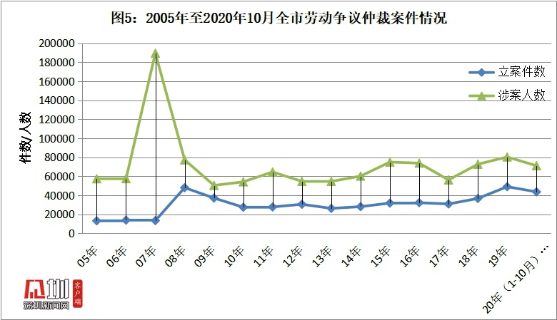 記者從發(fā)布會上獲悉,《勞動合同法》頒布實(shí)施之前,勞動爭議案件數(shù)量相對平穩(wěn),波動不大。2008年前后受到《勞動合同法》頒布實(shí)施和全球金融危機(jī)的雙重影響,進(jìn)入訴訟渠道的勞動爭議案件呈井噴式增長。2011年之后,隨著國內(nèi)外經(jīng)濟(jì)形勢好轉(zhuǎn)、用人單位用工方式的逐步規(guī)范以及政府主管部門執(zhí)法力度加大,勞資關(guān)系趨于穩(wěn)定,案件數(shù)量逐步回落。自2011年至今,深圳兩級法院受理的各類勞動爭議案件數(shù)量漸趨平穩(wěn),甚至有所下降。目前,案件數(shù)量已經(jīng)基本恢復(fù)至2008年之前的水平,但在全國范圍內(nèi),案件絕對數(shù)量仍然位于前列。