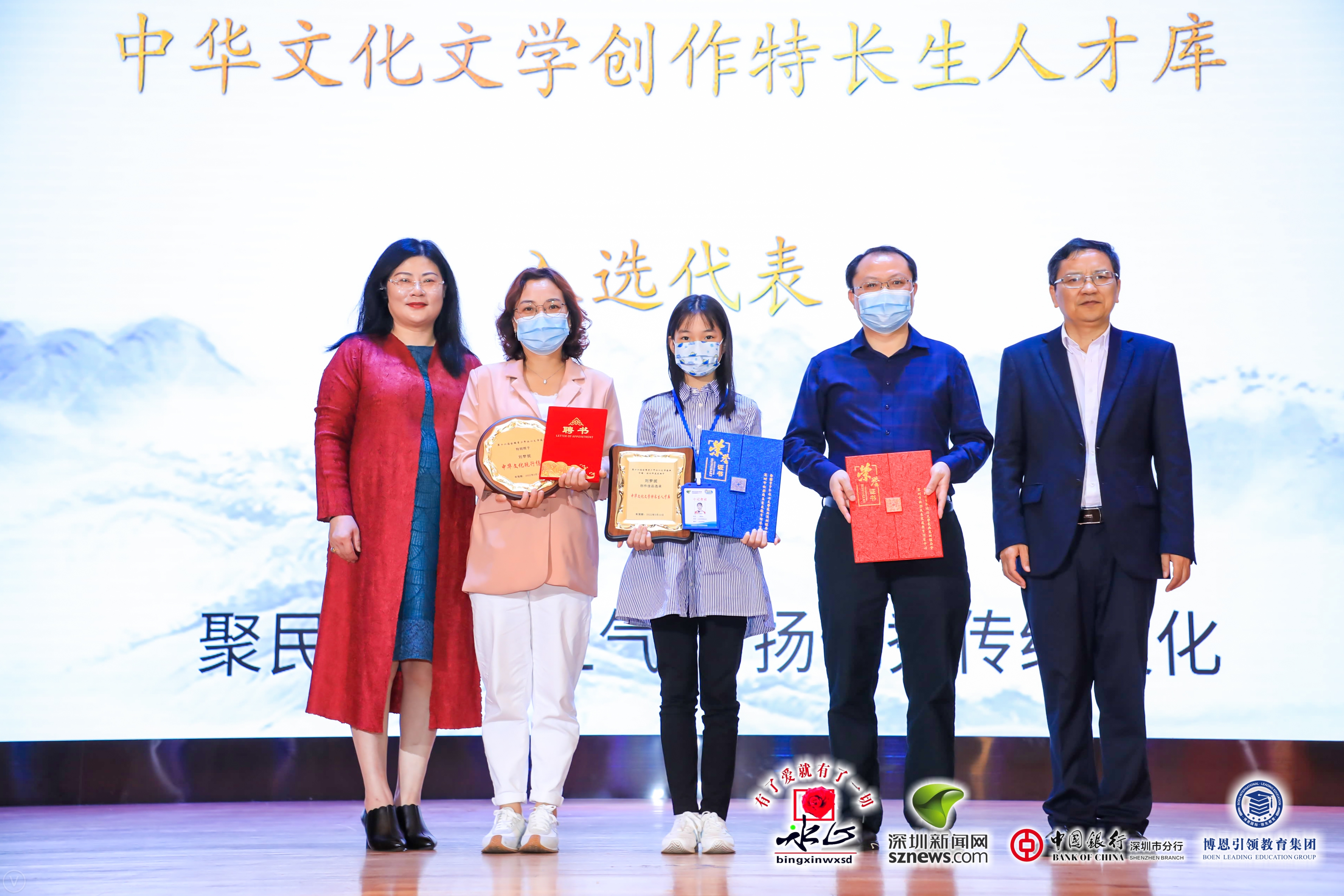 對入選“中華文化現(xiàn)行倡導者”“中華文化文學特長生人才庫”和“深網(wǎng)小記者”的代表劉夢妮進行頒獎頒證