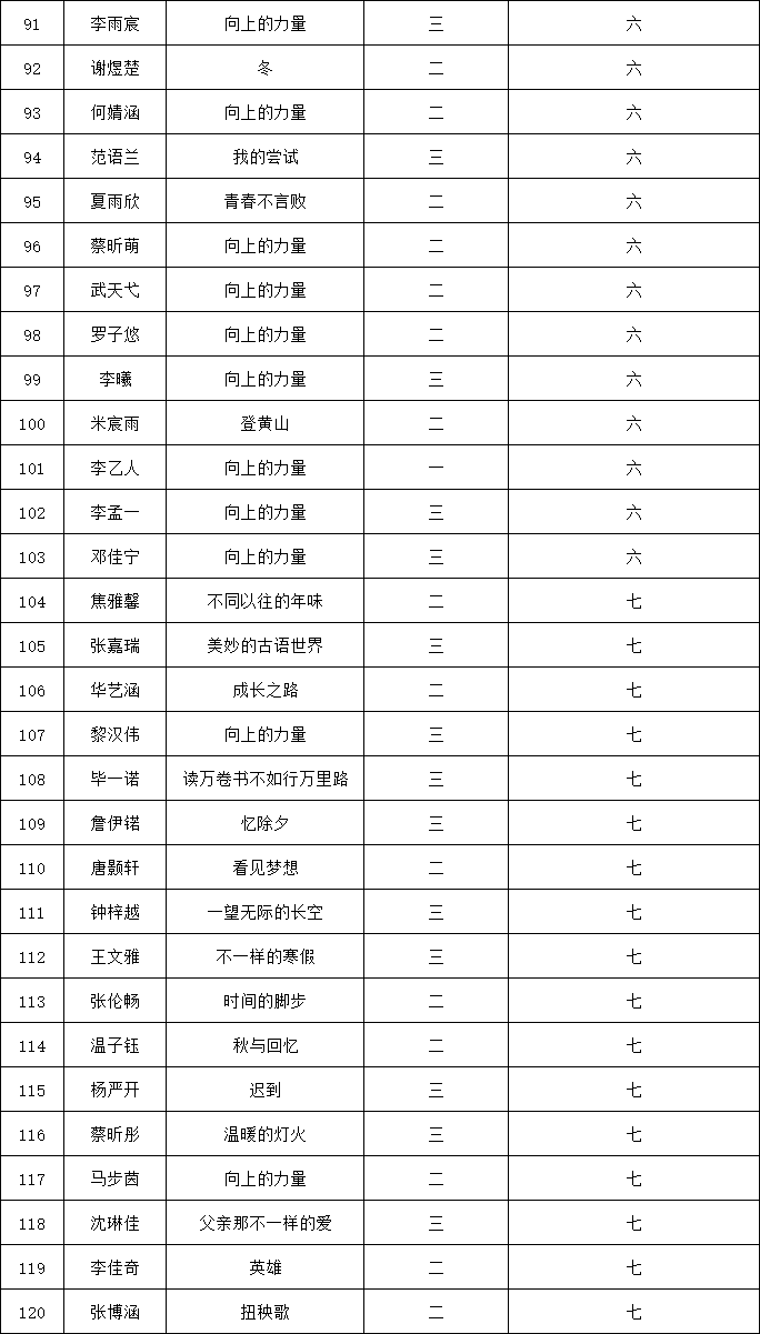 自2021年1月,活動征稿啟動以來,獲得了深圳市廣大中小學(xué)生、教師、文學(xué)愛好者的熱烈響應(yīng)積極參與,吸引了深圳百余所學(xué)校的上萬人關(guān)注報名?,F(xiàn)公布福田區(qū)明德實驗學(xué)校碧海校區(qū)專場晉級復(fù)賽名單如下: