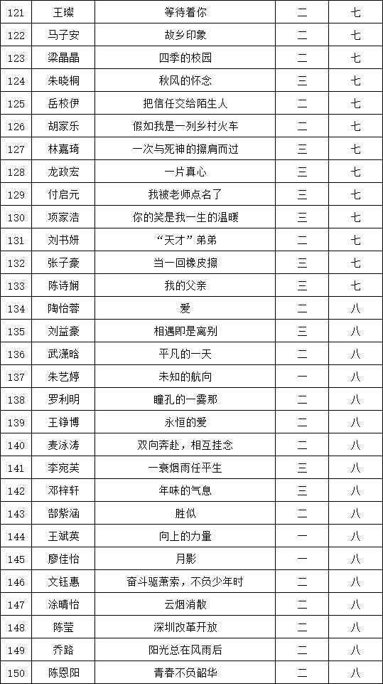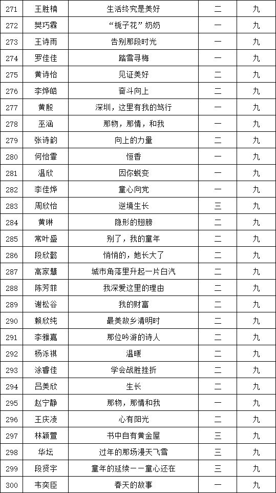 自2021年1月,活動征稿啟動以來,獲得了深圳市廣大中小學(xué)生、教師、文學(xué)愛好者的熱烈響應(yīng)積極參與,吸引了深圳百余所學(xué)校的上萬人關(guān)注報(bào)名。現(xiàn)公布福永中學(xué)晉級復(fù)賽名單如下: