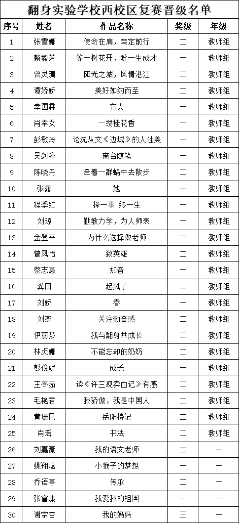 自2021年1月,活動征稿啟動以來,獲得了深圳市廣大中小學(xué)生、教師、文學(xué)愛好者的熱烈響應(yīng)積極參與,吸引了深圳百余所學(xué)校的上萬人關(guān)注報名?,F(xiàn)公布翻身實驗學(xué)校西校區(qū)晉級復(fù)賽名單如下: