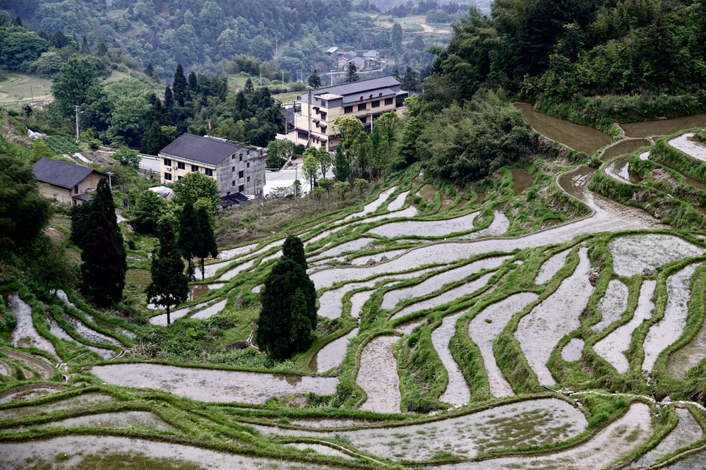梯田海拔高度200米—1400多米,跨越高山、丘陵、谷地三種地形,最多有700多層。李仁奇 攝
