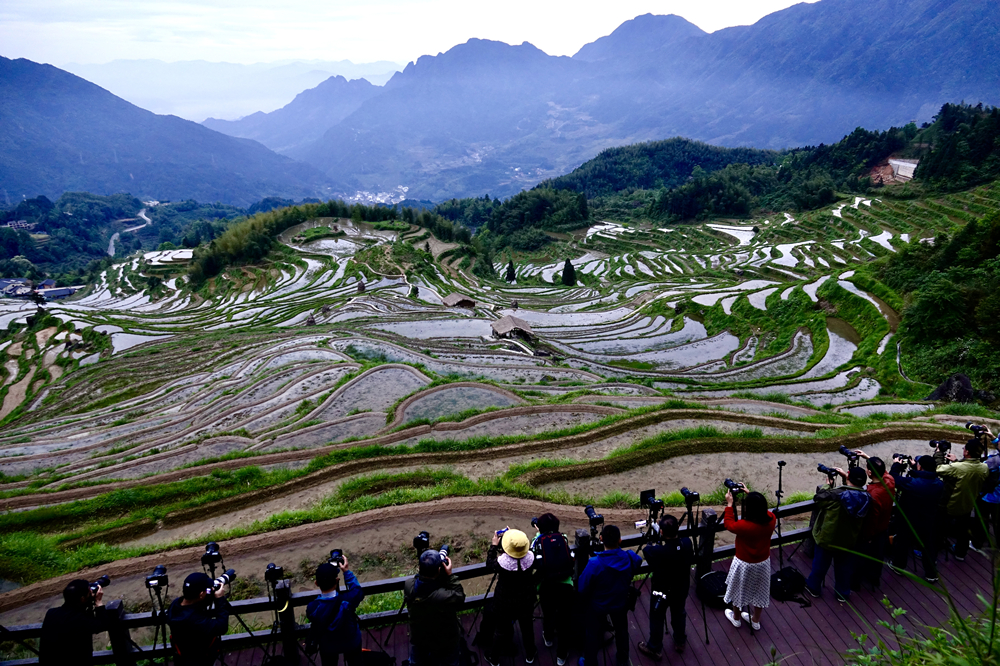 是華東最大的梯田群,具有“千層梯田、千米落差、千年歷史”,擁有“萬里云海、萬畝杜鵑、萬畝竹林”,是國家AAAA級(jí)旅游景區(qū),被譽(yù)為“中國最美梯田”。李仁奇 攝