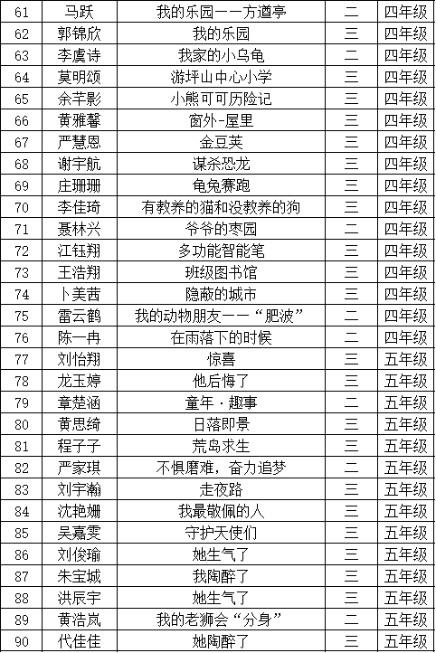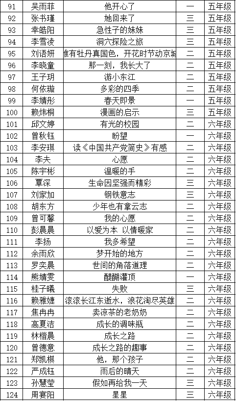 自2021年1月,活動(dòng)征稿啟動(dòng)以來,獲得了深圳市廣大中小學(xué)生、教師、文學(xué)愛好者的熱烈響應(yīng)積極參與,吸引了深圳百余所學(xué)校的上萬人關(guān)注報(bào)名?,F(xiàn)公布坪山區(qū)坪山中心小學(xué)晉級(jí)復(fù)賽名單如下: