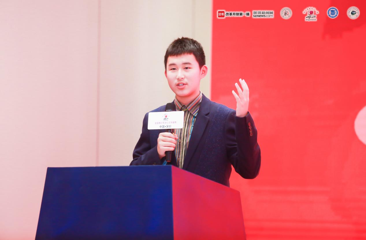 《中華文化現(xiàn)行倡導(dǎo)者》和《中華文化文學(xué)特長(zhǎng)生人才庫(kù)》代表:南山中英文學(xué)校太子灣實(shí)驗(yàn)部袁子凡帶來(lái)詩(shī)朗誦《我愛這土地》