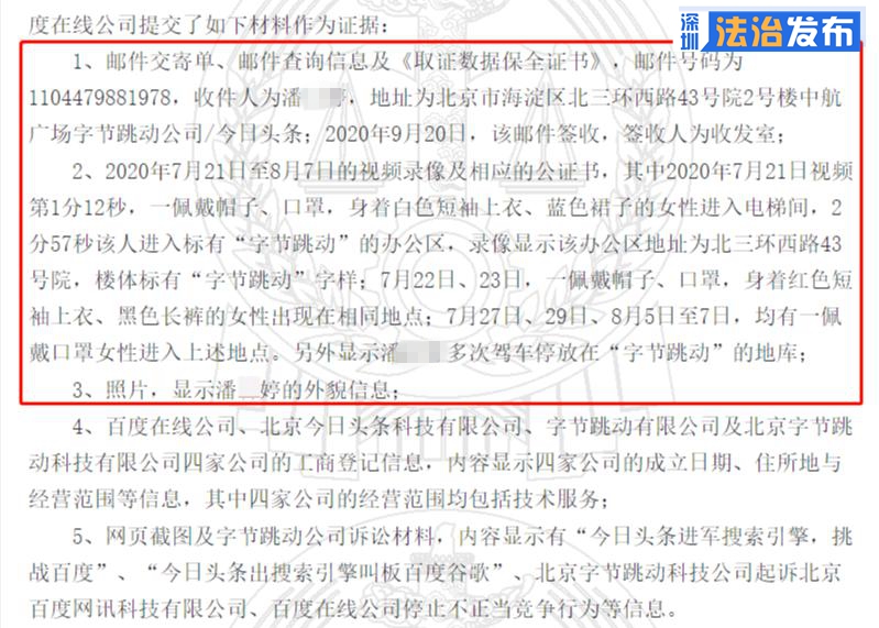 有一個細節(jié)值得注意:百度公司不僅向字節(jié)跳動辦公地址寄去收件人為潘某某的快遞,而且向法庭提供了潘某某出現(xiàn)在字節(jié)跳動辦公區(qū)、駕車停放在字節(jié)跳動地庫等多個視頻錄像,這些舉動被網(wǎng)友解讀為現(xiàn)實版諜戰(zhàn)大片。很多人從案件看到互聯(lián)網(wǎng)行業(yè)激烈的人才爭奪戰(zhàn)和同業(yè)競爭的殘酷,也再次感受到競業(yè)限制的威力。