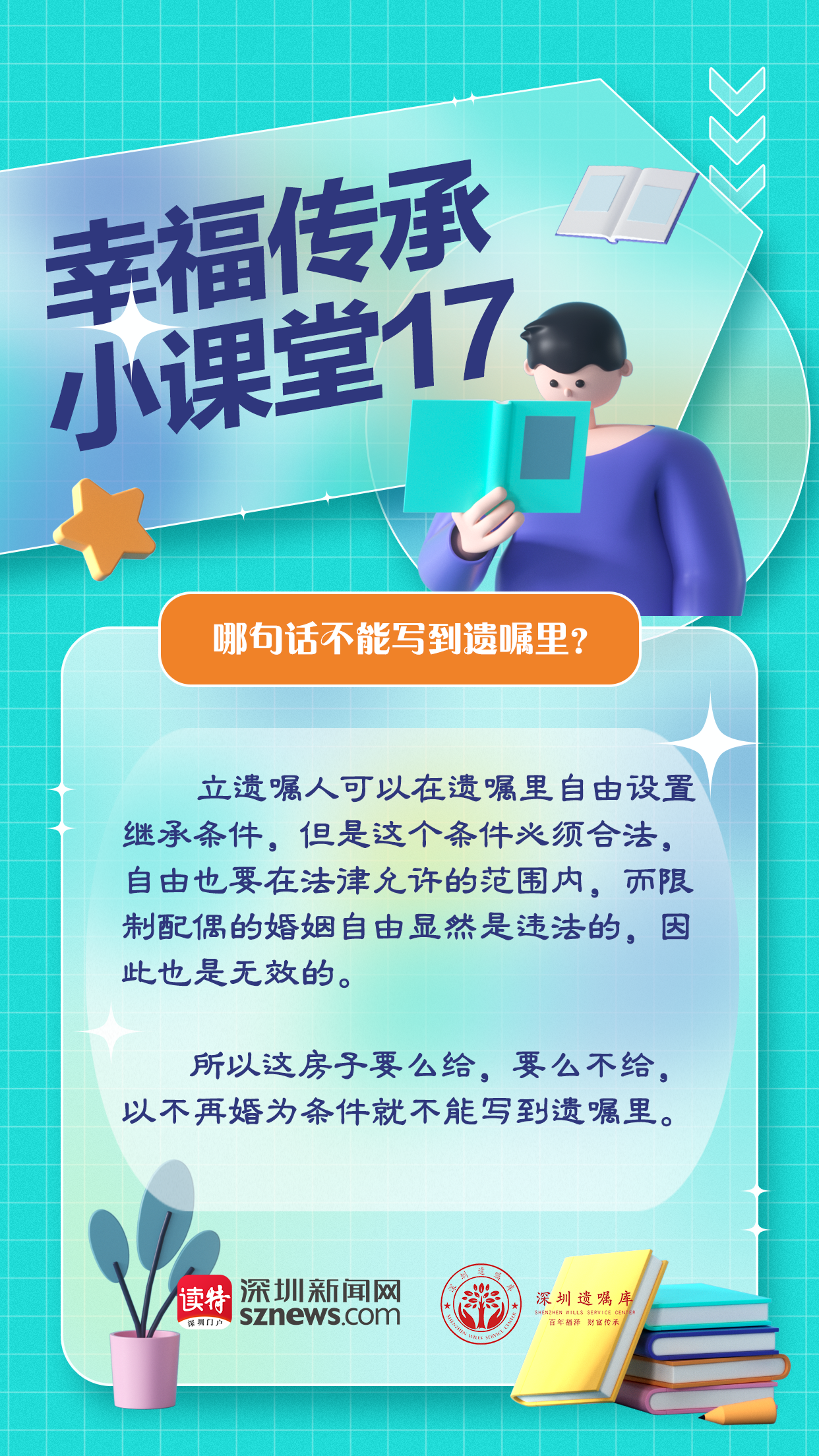 由深圳新聞網(wǎng)聯(lián)合廣東嘉得信律師事務(wù)所、深圳遺囑庫特別策劃的“幸福傳承小課堂”第17期就來說說,哪些話不能寫到遺囑里。上述案例的老兩口考慮很周全,他們把各個銀行的存款都列了一個明細單,標明了分配方式,哪一筆給兒子,哪一筆留給女兒,總體來說兒女分到的財產(chǎn)都差不多。