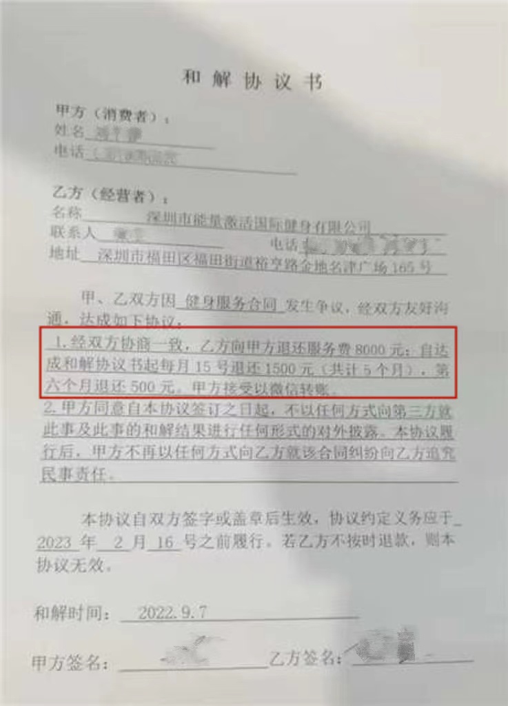 能量激活健身工作室 (福田口岸店 ):拒不履行退款協(xié)議
