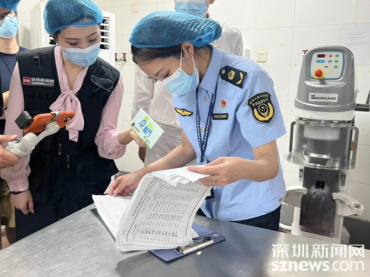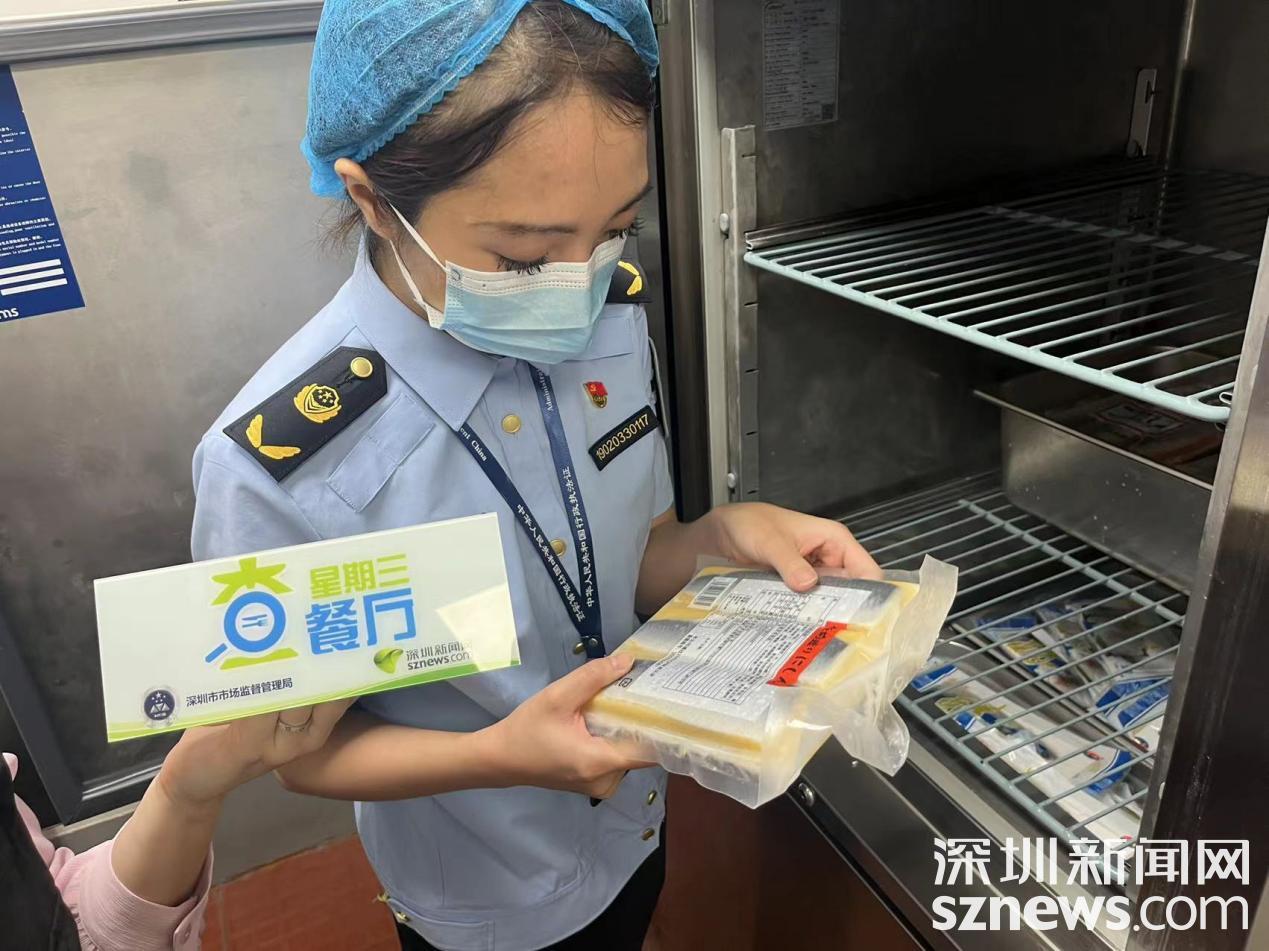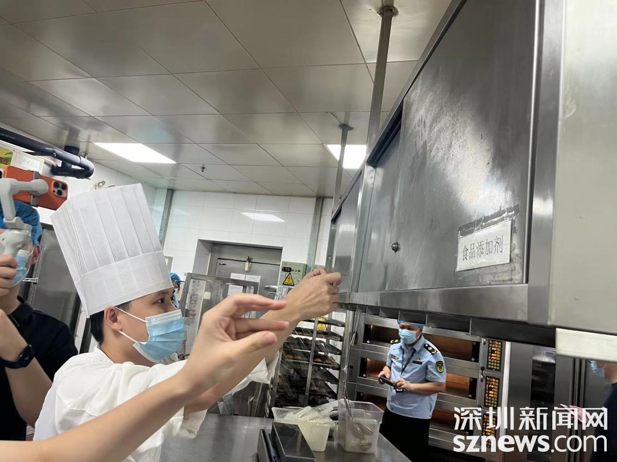深圳市市場監(jiān)督管理局鹽田監(jiān)管局執(zhí)法人員鄒連慧對本次執(zhí)法行動進行總結。她表示,本次檢查結果良好,量化評級維持A級;但在檢查過程中,也發(fā)現(xiàn)一些細節(jié)問題需要改進,例如餅房冰柜標簽未明確標注食品類別、專間空調(diào)溫度顯示屏損壞等。