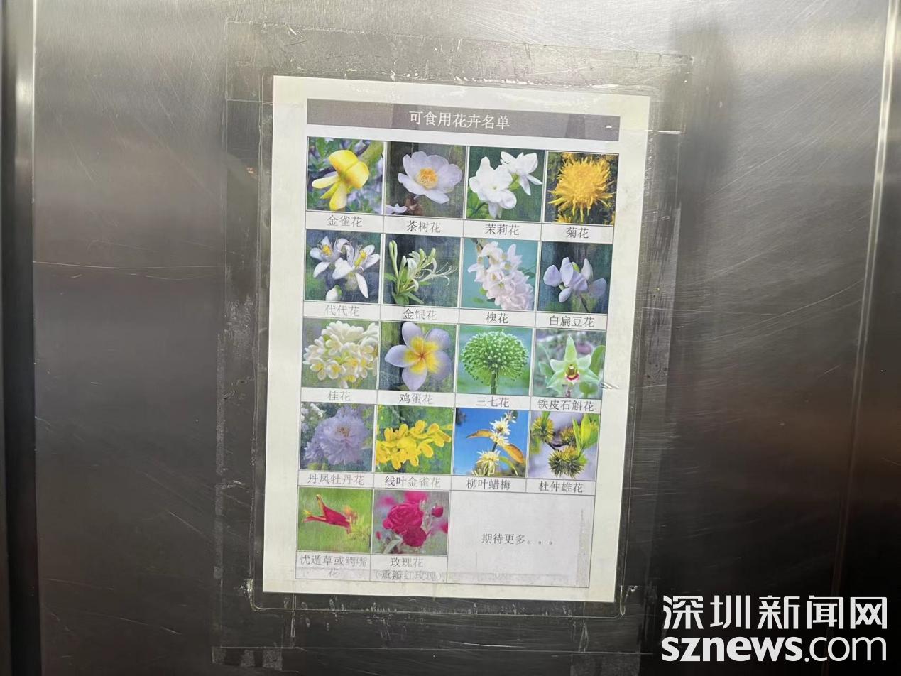 后廚分為預處理區(qū)、操作區(qū)、冷食專間、留樣區(qū)、糕點間、洗消區(qū)等區(qū)域。在后廚操作區(qū),執(zhí)法人員隨機查看調(diào)料標簽,均在保質(zhì)期內(nèi);冰箱食材貼有相應標簽,且表面特別張貼了“可食用花卉名單”。專間內(nèi),冰柜中食材均有相應標簽,且分區(qū)域存儲,無混放現(xiàn)象;留樣冰箱中的樣品重量、時間、標簽及臺賬記錄均符合要求。