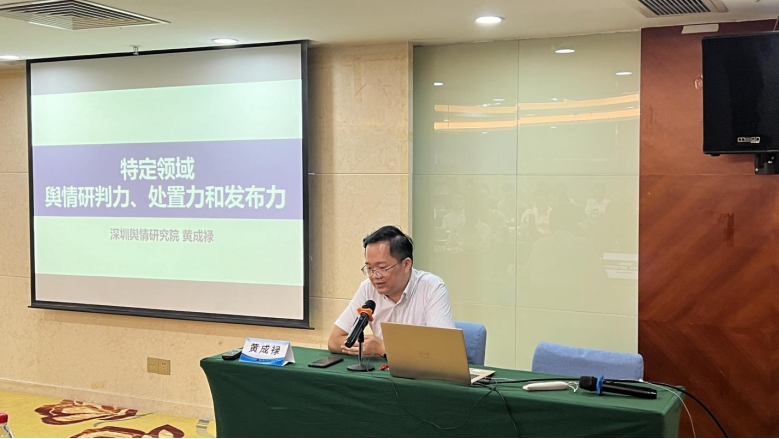 深圳新聞網(wǎng)2024年8月2日訊(記者 蔡雪曼 實(shí)習(xí)生 謝臻兒)為提高全市特定領(lǐng)域人員輿情工作素養(yǎng),深化輿情意識(shí)和認(rèn)知,助力營造良好的輿論氛圍,7月25日下午,某市直單位舉辦專題培訓(xùn)班,邀請(qǐng)深圳輿情研究院執(zhí)行院長黃成祿擔(dān)任授課老師,圍繞《特定領(lǐng)域輿情研判力、處置力和發(fā)布力》主題展開授課。