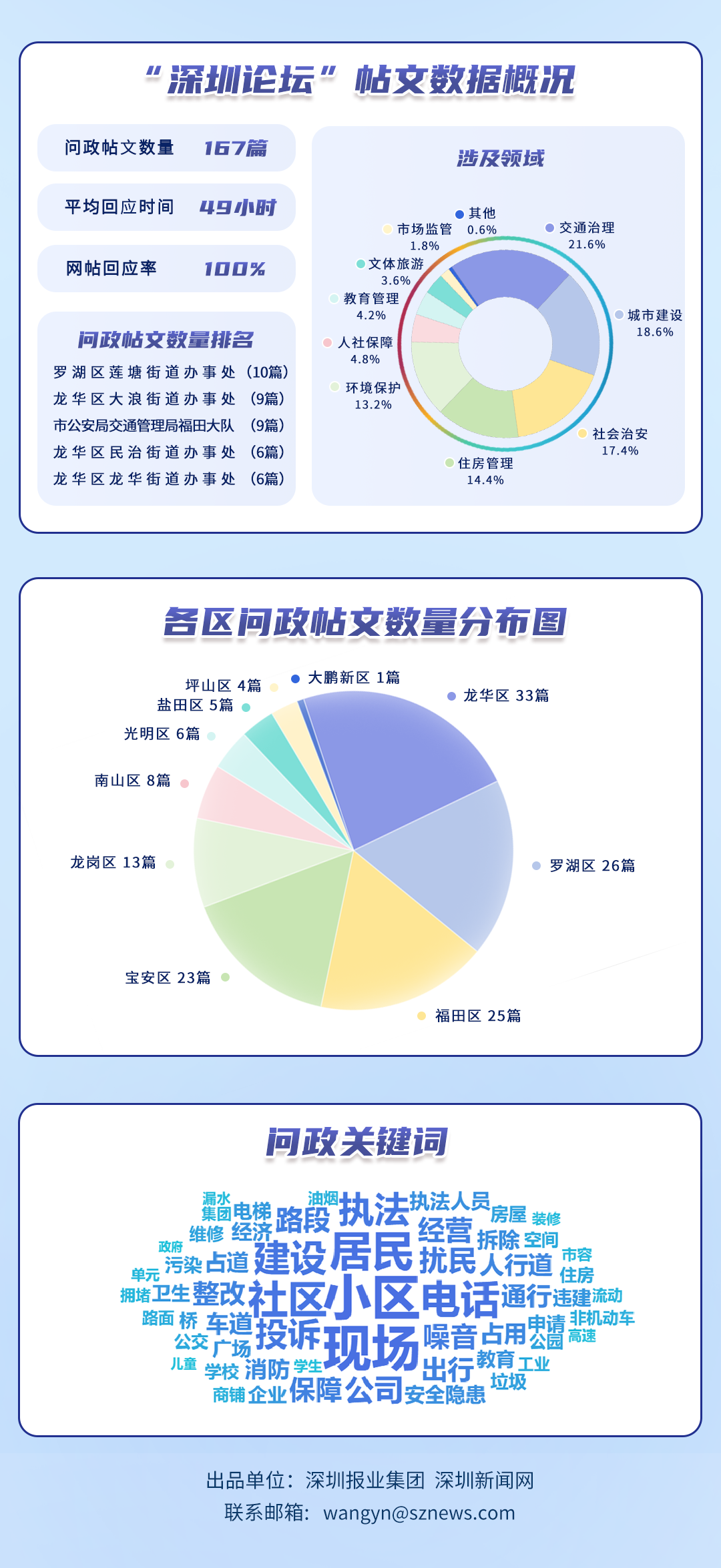 榜單帖文數據源自深圳論壇,均為網民點名希望涉事單位回應的網帖,共涵蓋77個單位、167篇網帖。所采集帖文發(fā)布時間為2025年8月1日至8月31日,采集截止時間為2025年9月2日。
