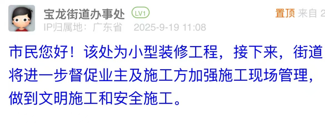 優(yōu)化建議:該回應較為空泛,市民明確反映了“砸墻聲嚴重擾民”“存在安全隱患”的核心訴求,但回復僅籠統(tǒng)說明是“小型裝修工程”并“督促加強管理”,未針對關鍵訴求提出具體解決方案。建議減少“加強管理”類模糊表述,以具體措施回應市民疑問,如若雜物已清理,可附現(xiàn)場圖片佐證,若未清理則需明確施工時限、確保施工時間合理,以務實舉措回應市民疑問,增強回應溫度。