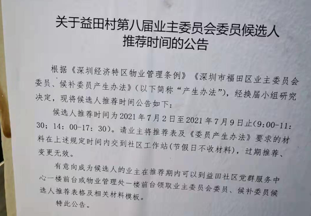 業(yè)主質(zhì)疑益田村業(yè)委會選舉,回應:歡迎依法反饋