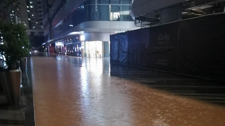 南山南海公園來福士廣場積水,回應:已清理淤泥堵塞