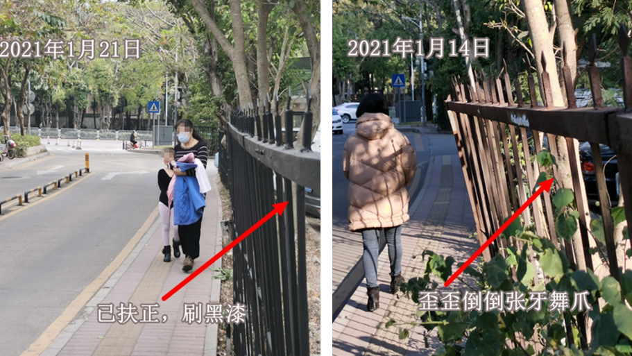 此前因找不到代建單位而無(wú)法移交主管部門管養(yǎng)的竹香一路,僅僅過了一周的時(shí)間,歪歪倒倒的圍欄扶正了,人行道也即將拓寬。