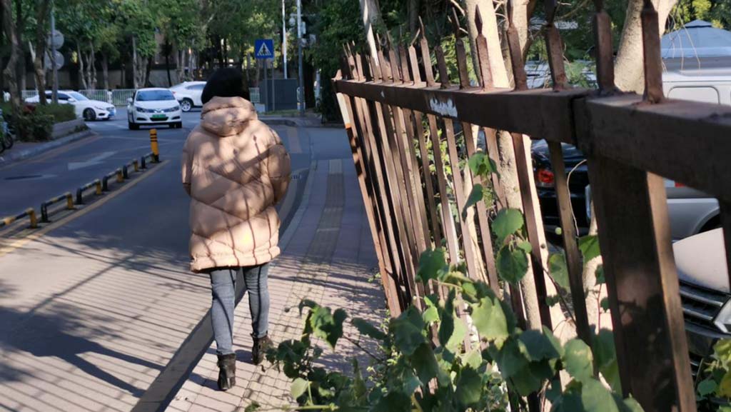 由于竹香一路一側(cè)人行道通行距離不足一米,且靠近深南汽配城的鐵柵欄”張牙舞爪“,搖搖欲墜,向外傾斜擠壓了通行空間,不少家長(zhǎng)讓孩子走在人行道上,自己則是走在車行道上,與身邊的汽車擦肩而過。